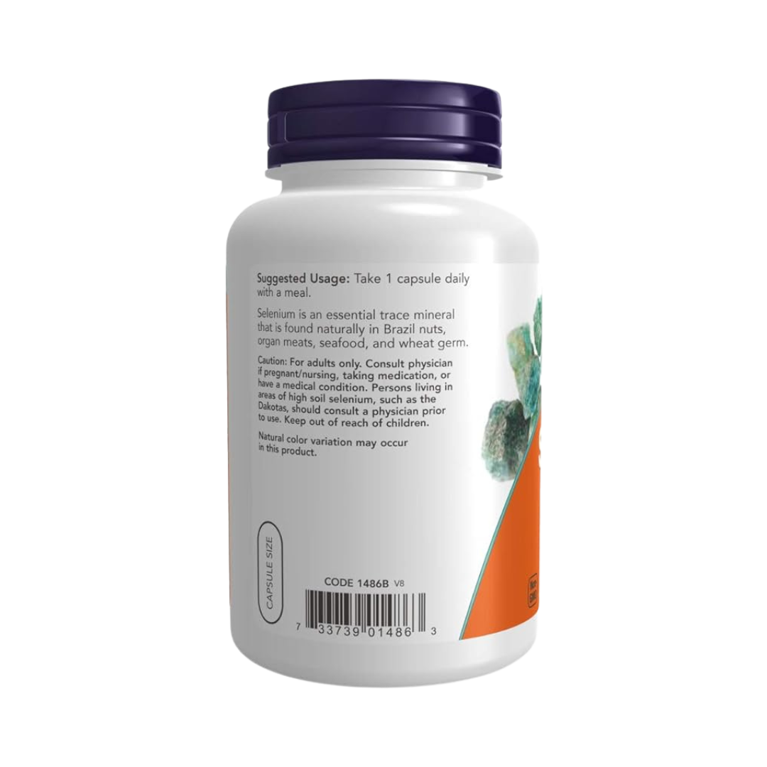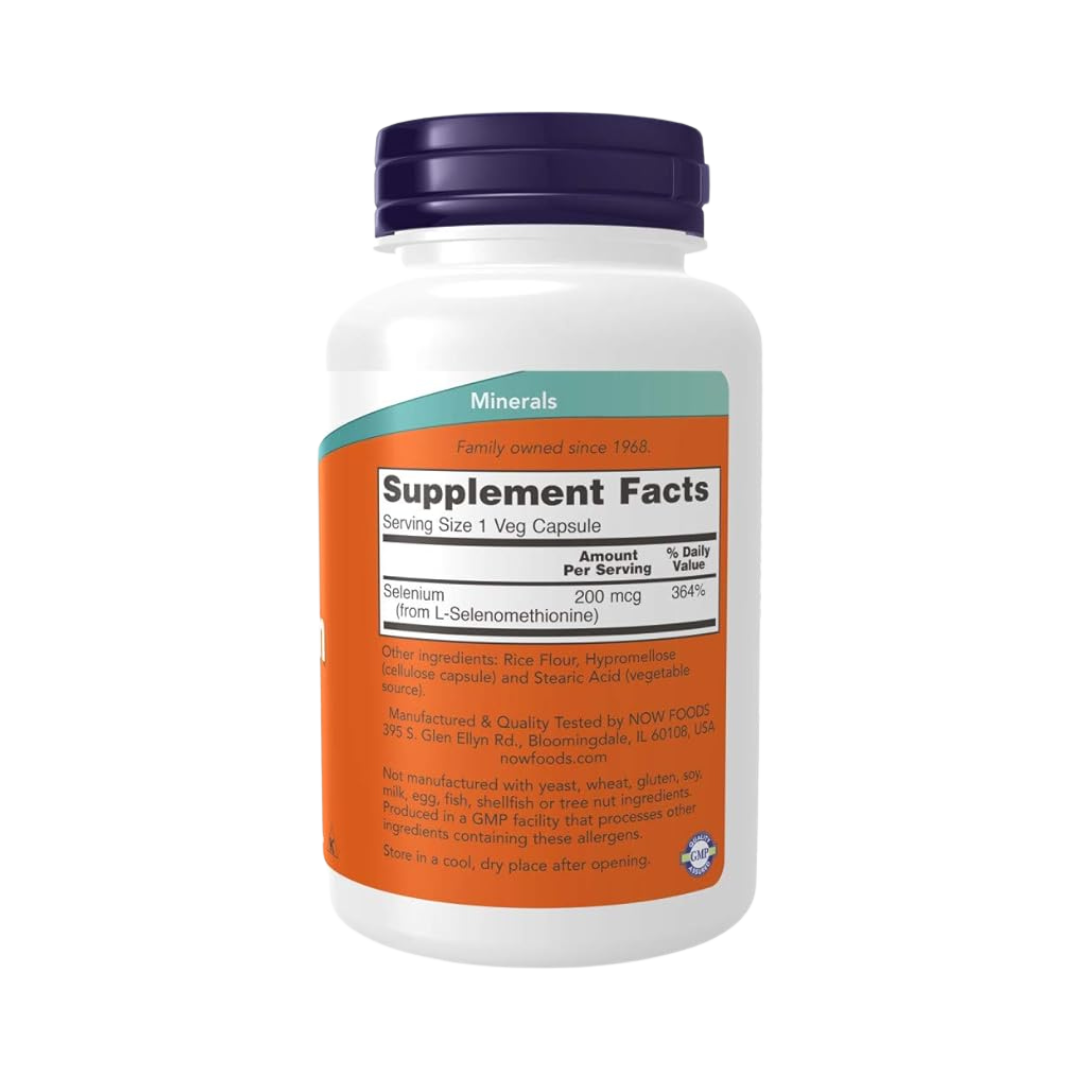 Suplemento de selenio: proporciona 200 mcg de selenio por cápsula para apoyo antioxidante.