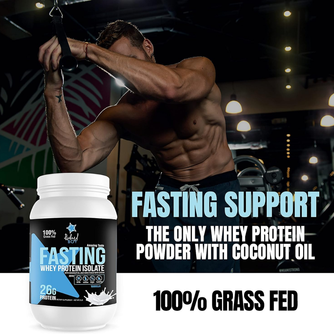 Proteína de suero de leche en ayunas aislada de vainilla – 100% proteína de suero natural en polvo – 100% alimentado con pasto – Proteína de suero keto sin gluten – con aceite de coco – Batido de proteína de suero de vainilla.